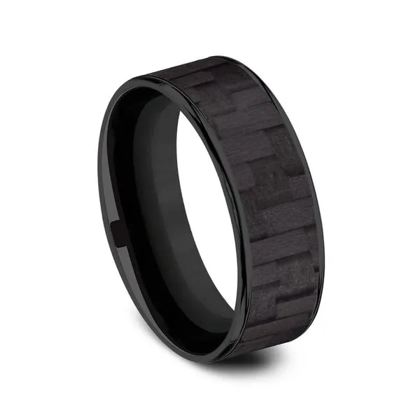 7.5mm, Comfort fit Black Titanium and Black Carbon Fiber Twilled Carbon Fiber pattern, thin edges