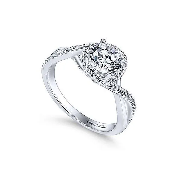 14K WHITE GOLD (COURTNEY) SEMI-MOUNT ENGAGEMENT RING WITH TWISTED SHANK AND HALO BY GABRIEL & CO. SIDE DIAMOND WEIGHT 0.23TDW (CLARITY SI1, COLOR G-H) AND A 6.5MM CZ CENTER; FINGER SIZE 6.5 BY GABRIEL & CO. - SERIAL NO: S1262627